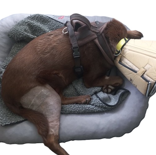 Dit fleece tuig met handvat is ideaal om de middelgrote of grote hond met rugklachten of met licht verminderde functie van de voorhand of achterhand te begeleiden bij huis, op de trap en bij de auto. Het tuig ondersteunt het borstbeen van uw hond en biedt draagcomfort zonder huidbelasting. U kunt het tuig daarom bij uw aanwezigheid aan laten wanneer u uw hond bij het opstaan moet helpen. Door het stevige, met fleece uitgevoerde handvat, is dit tuig ook prettig voor u. Uiteraard kunt u het tuig ook tijdens de wandeling aan laten: het tuig heeft een ring op de rug en ook op de borst.